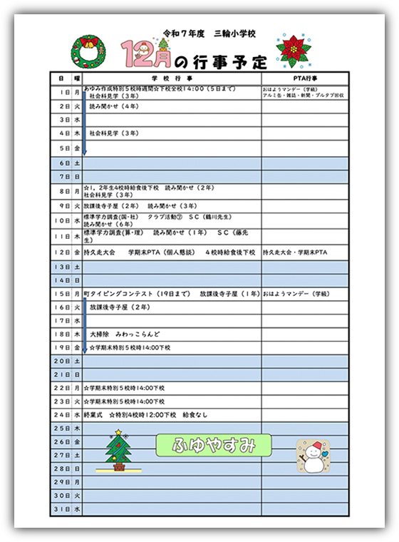 ※行事予定表は11月29日現在のものです。変更になる場合もありますのでご了承ください。